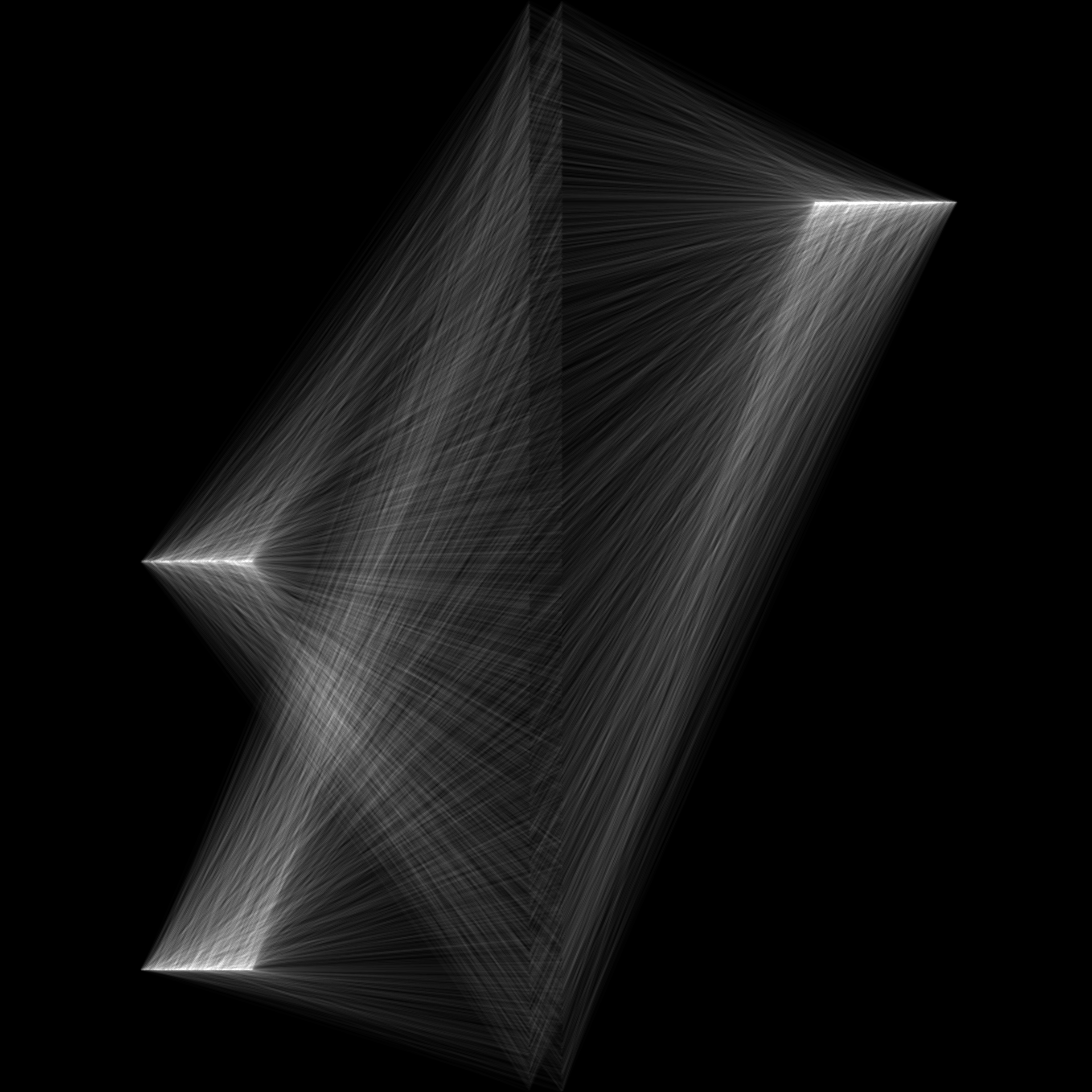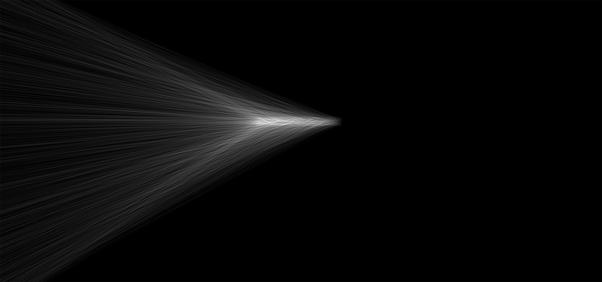 Complementing the visual language, every print follows simple rules so that anyone can create the image using just a ruler, a mark-making tool, and time. One set of “start” lines are created. Another set of “stop” lines are also created. A point anywere on a “start” line is picked. A line is then drawn to a point anywere on an “stop” line. The sizes and positions of the “start” and “stop” lines in relation to each other determines the balance of values, textures, as well the rest of the composition.