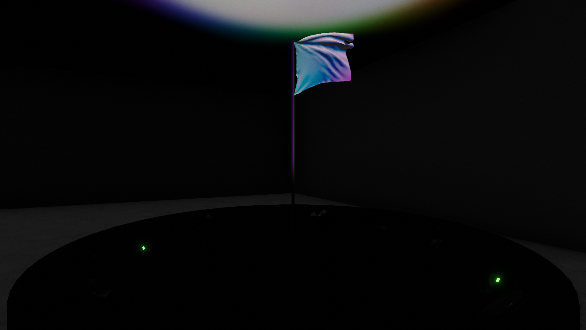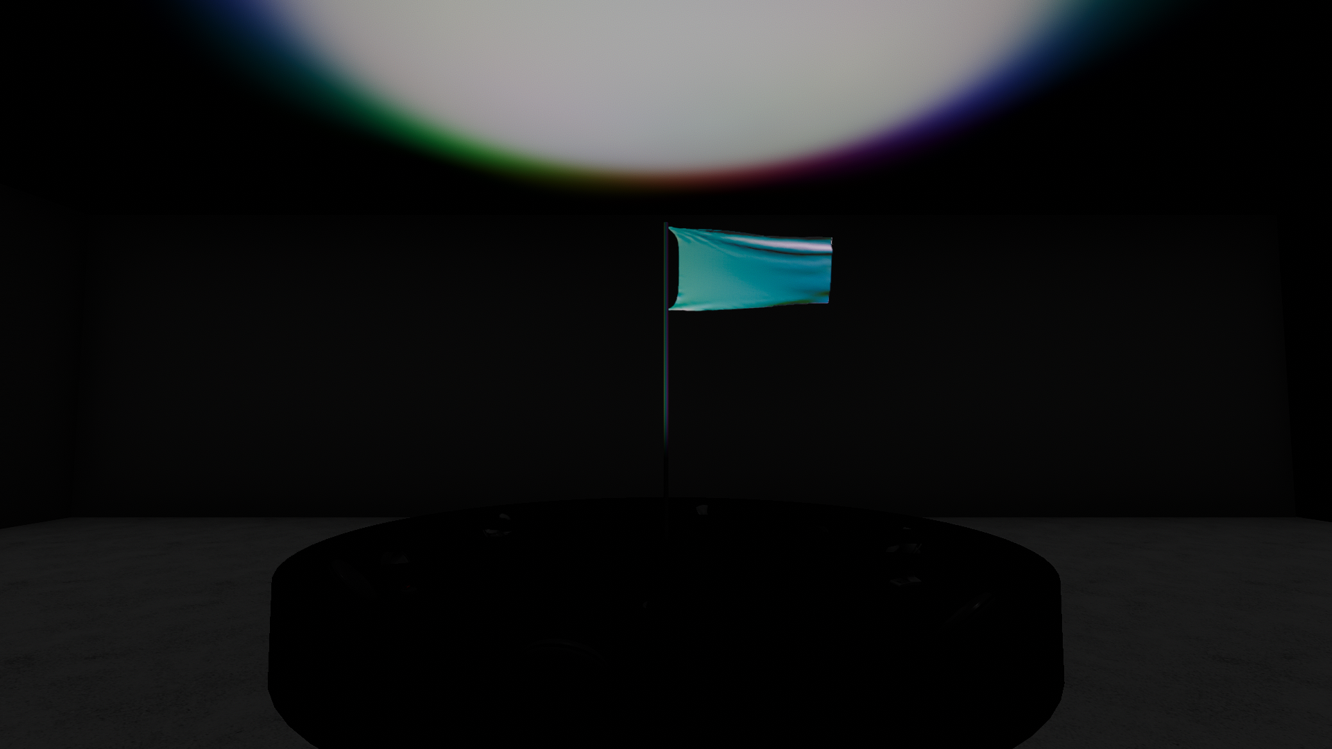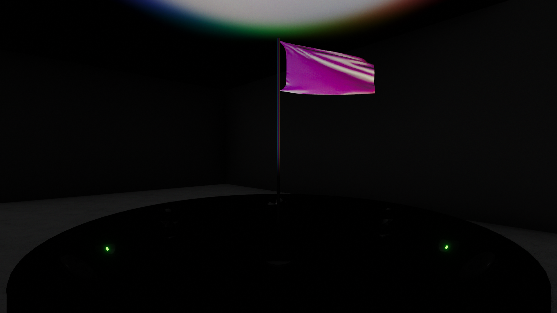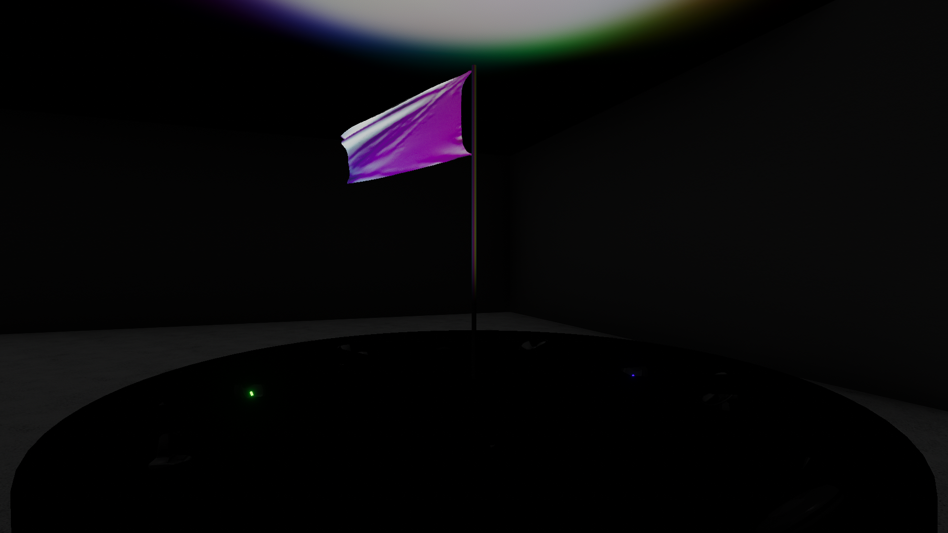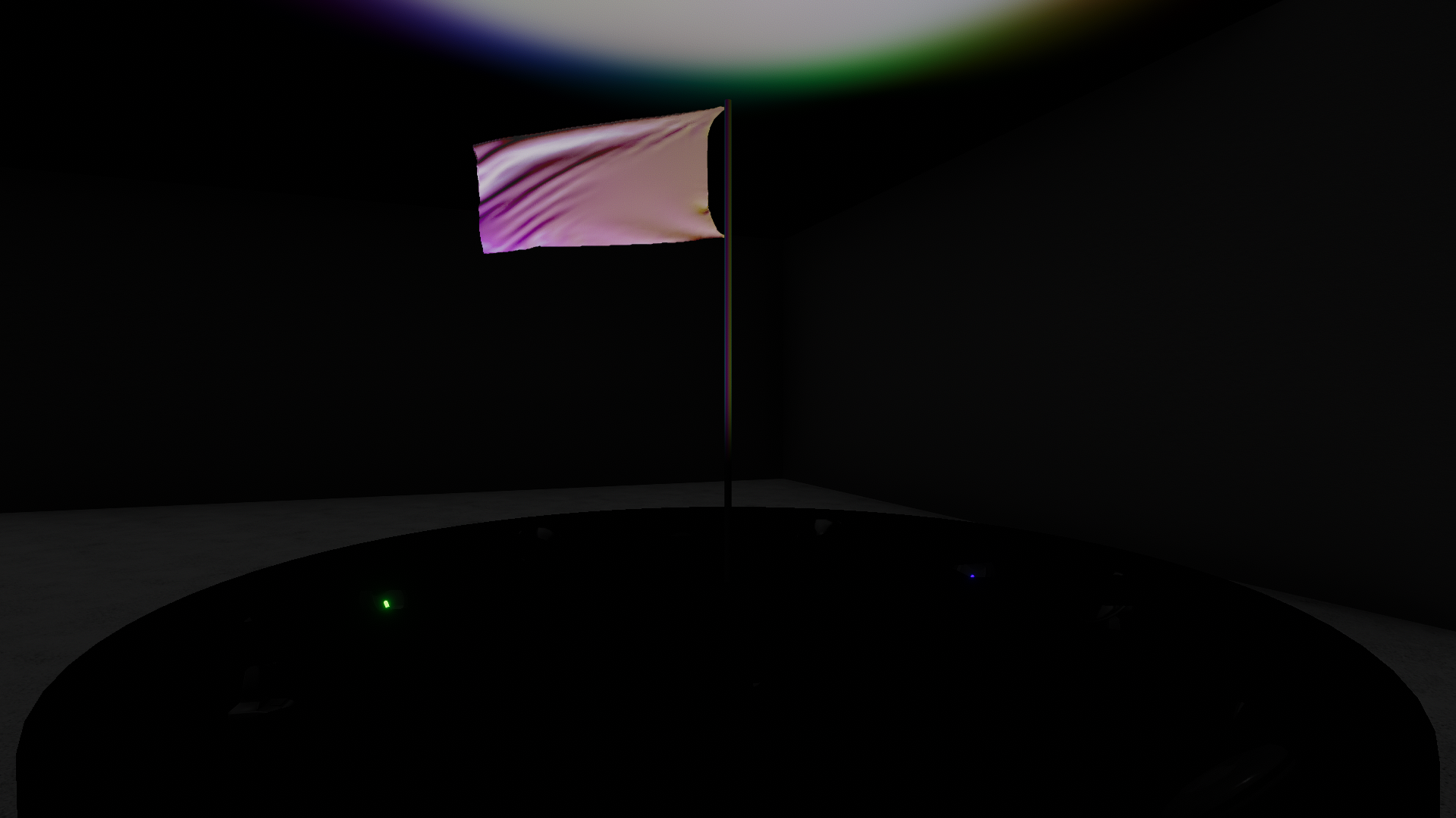 Universal Flag is a simple, white canvas flag. As the flag blows, the blank canvas of the flag shifts through all visible hues. As the flag bends and twists through forms, the hues simultaneously contrast and blend into an ever-evolving mix of flag designs and colors.